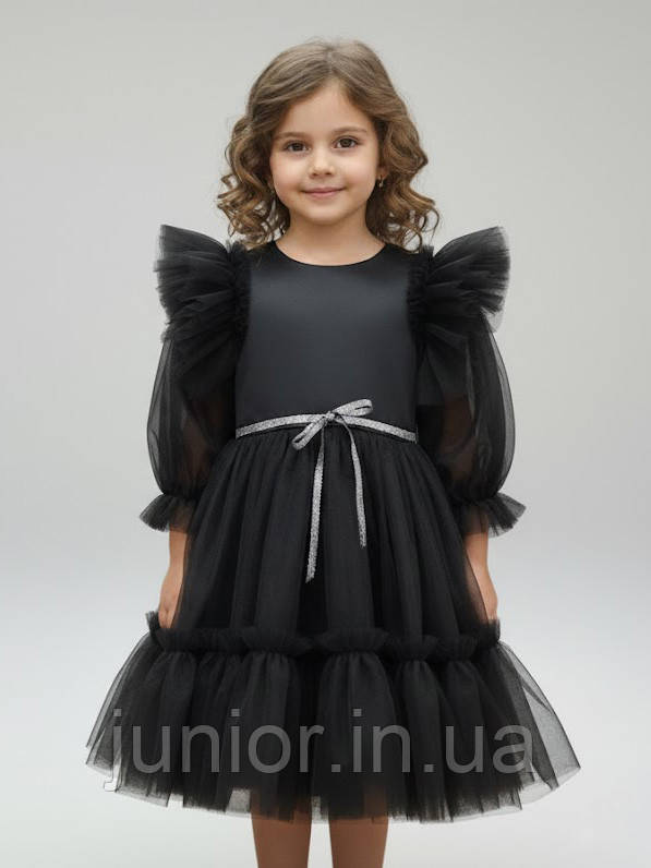 Це вишукане чорне плаття втілює неповторний стиль загадкової та харизматичної Уэнсдей Аддамс. Виготовлене з елегантного атласу та доповнене пишним фатином, воно ідеально підійде для створення незабутнього образу на тематичній вечірці, святковому заході або просто для вираження індивідуальності вашої дівчинки. Строгий чорний колір та лаконічний дизайн підкреслять її особливий смак та додадуть нотку містичності.