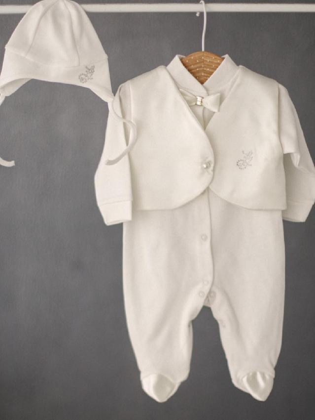 Комбінезон ошатний велюровий "Сеньор" + шапочка (молочний (56))