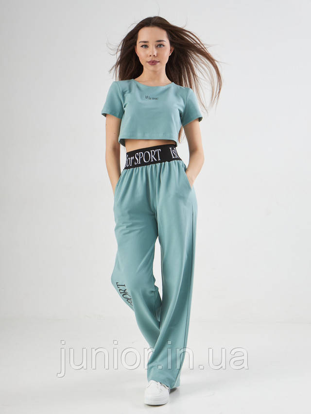 Костюм літній прогулянковий підлітковий для дівчинки топ і штани палаццо (158р)
