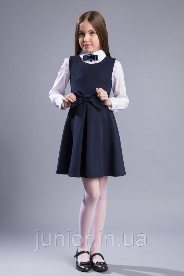 Ошатний шкільний сарафан з мереживом для дівчинки (116-128р)
