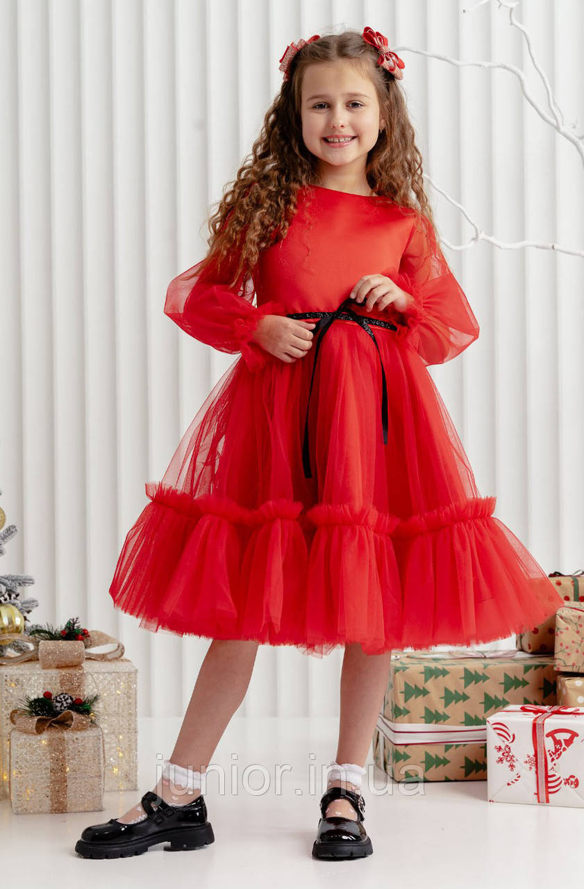 Сукня фатинова для дівчинки Ляля Червона 104-146 р. Ошатне пишне плаття Святкова сукня на дівчинку