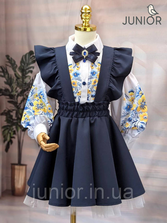 Спідниця-сарафан із крильцями шкільна для дівчинки Синій. Шкільний сарафан для дівчаток