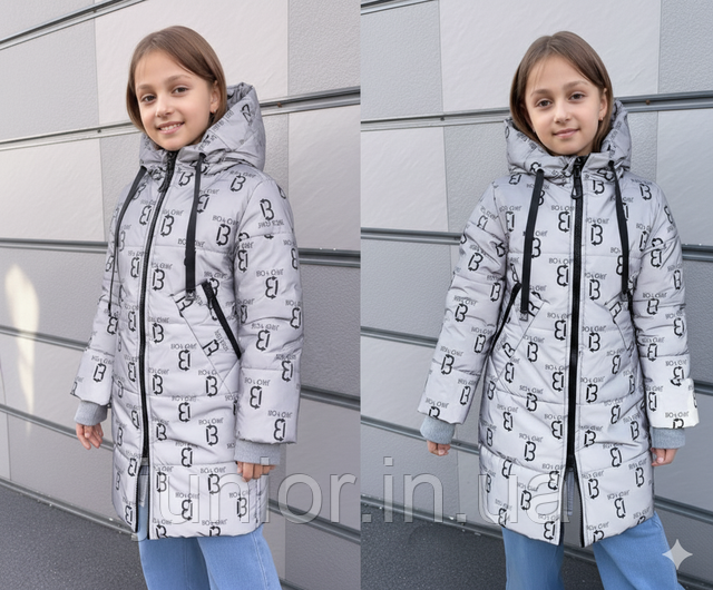 Зимова світловідбивна куртка для дівчинки "Gerl " з капюшоном утеплена екопухом (116-134р)