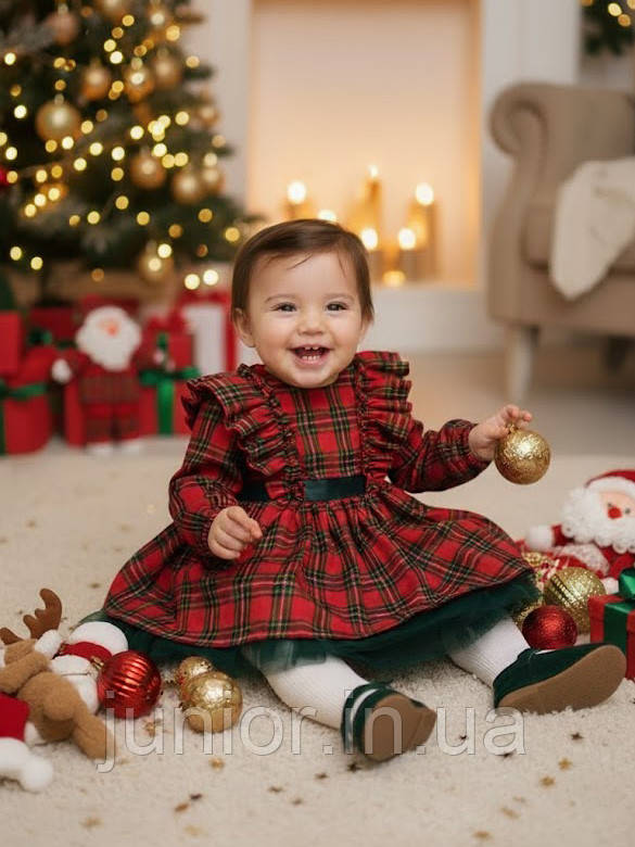 Новорічне червоне картате плаття для дівчаток (розміри 80, 86, 92)