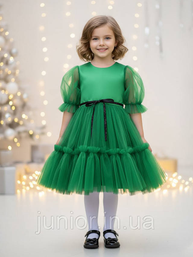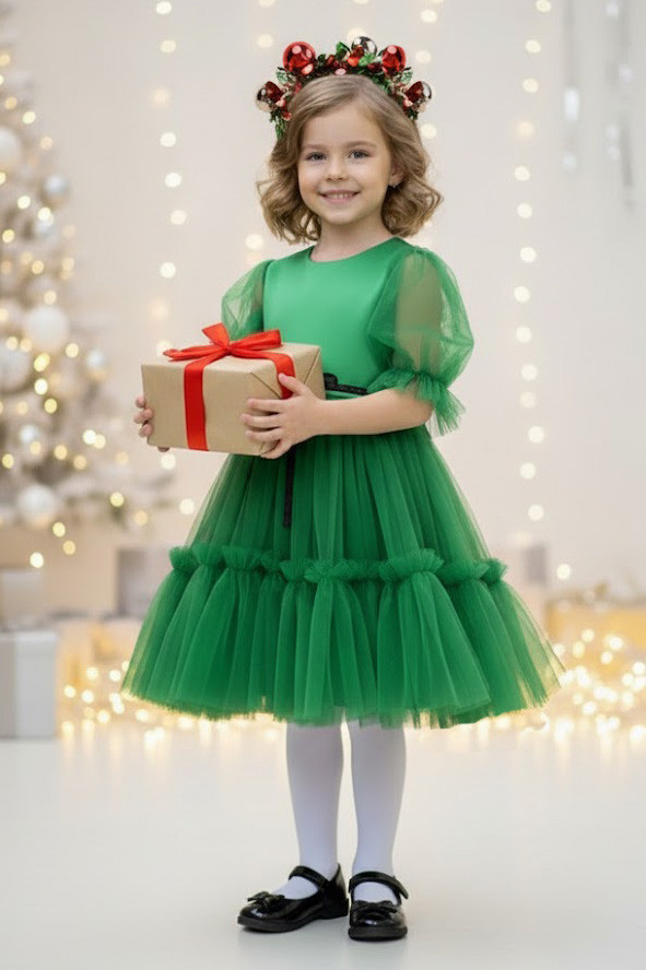 Зелена фатинова сукня для дівчинки — ніжний і святковий образ для справжньої маленької принцеси.