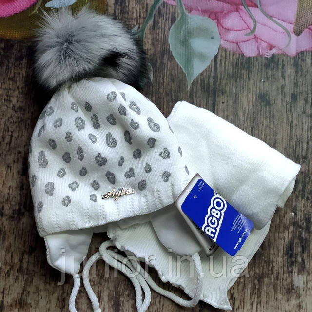 Зимовий комплект для дівчинки з хутряним помпоном.Agbo (Польща).