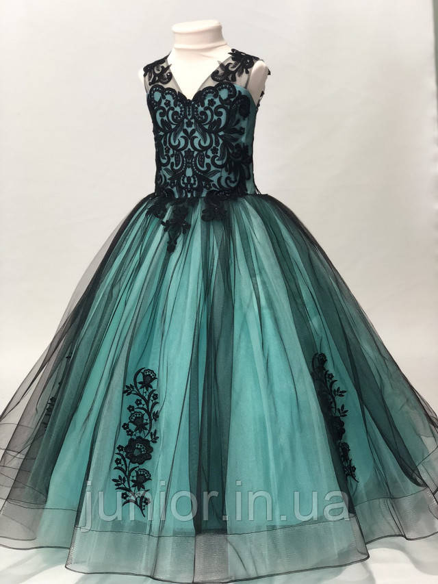 Бірюзове святкове плаття з мереживним ліфом для дівчинки "Камелія"